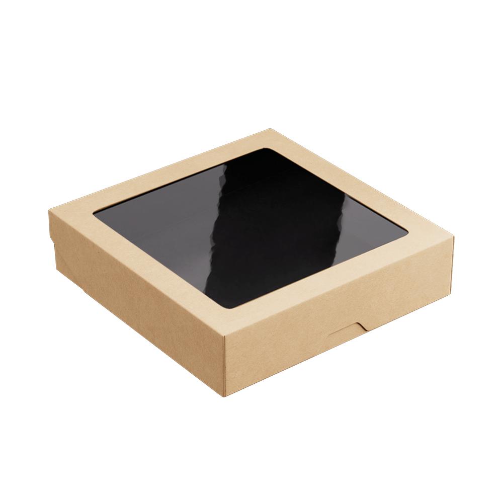Контейнер бумажный с окном 1500мл 200х200х48мм крафт ламин черный внутри OneBox 1EA 25/150 купить оптом и розницу с доставкой в Набережных Челнах