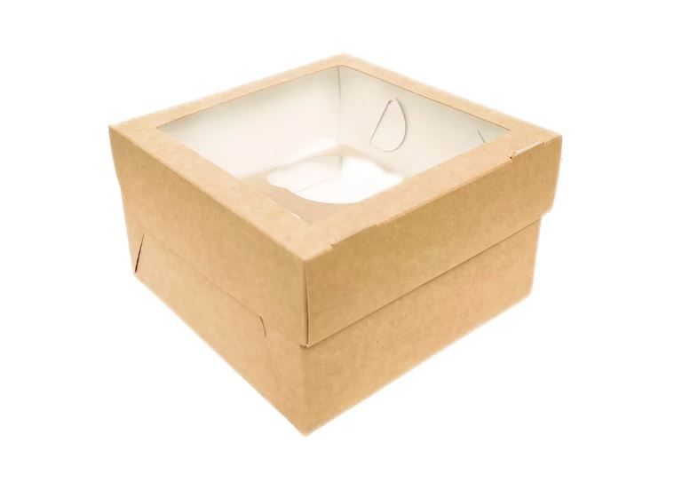 Коробка для капкейков/маффинов с окном 160х160х100мм на 4шт картон ECO MUF 4 DoECO 25/150 купить оптом и розницу с доставкой в Набережных Челнах