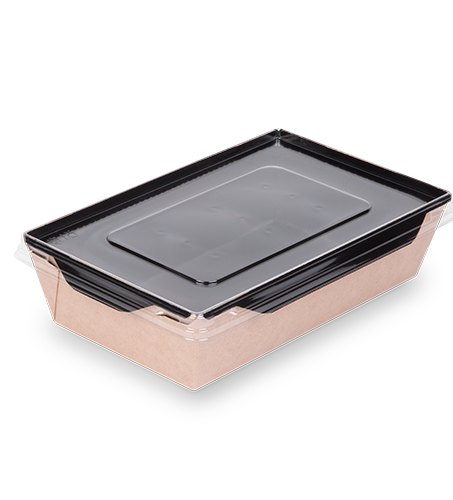 Контейнер бумажный 800мл 209х127х55мм крафт внутри черн ламин OSQ OpSalad BE (крышка 460092) 50/400 купить оптом и розницу с доставкой в Набережных Челнах