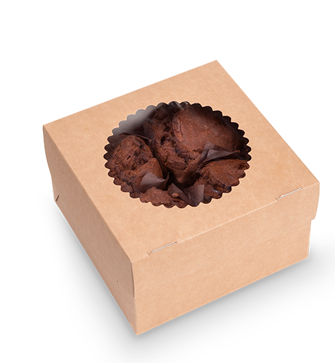 Коробка для капкейков/маффинов с окном 160х160х100мм на 4шт картон OSQ MUF 2 25/175 купить оптом и розницу с доставкой в Набережных Челнах