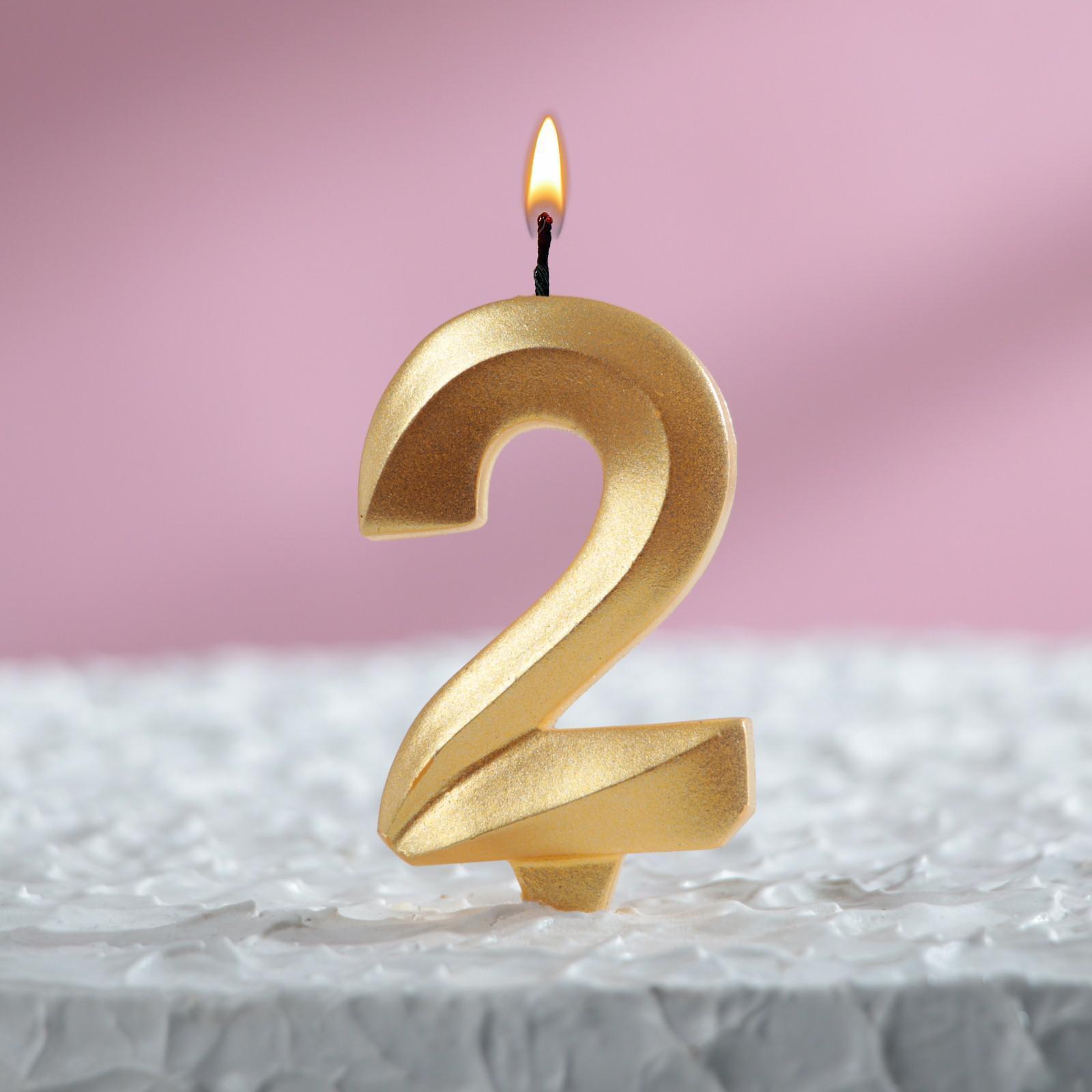 Свеча для торта Грань Цифра 2 золотая 1/100