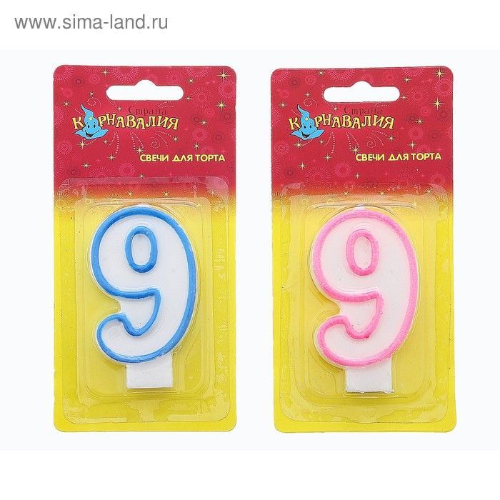 Свеча для торта Цветной ободок Цифра 9, цвета МИКС 1/600 оптом и в розницу в Набережных Челнах, цены в каталоге с доставкой