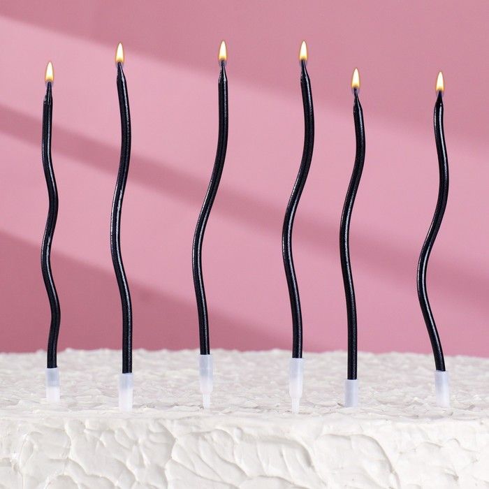 Свеча для торта Серпантин витые мокрый асфальт 6шт 1/400 оптом и в розницу в Набережных Челнах, цены в каталоге с доставкой