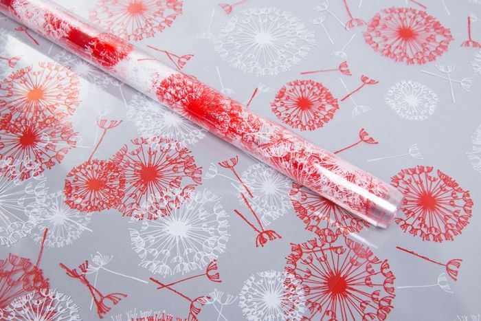 Ролик 70см х8м пленка полипропилен с рисунком Одуванчики белый красный 1/10 оптом и в розницу в Набережных Челнах, цены в каталоге с доставкой