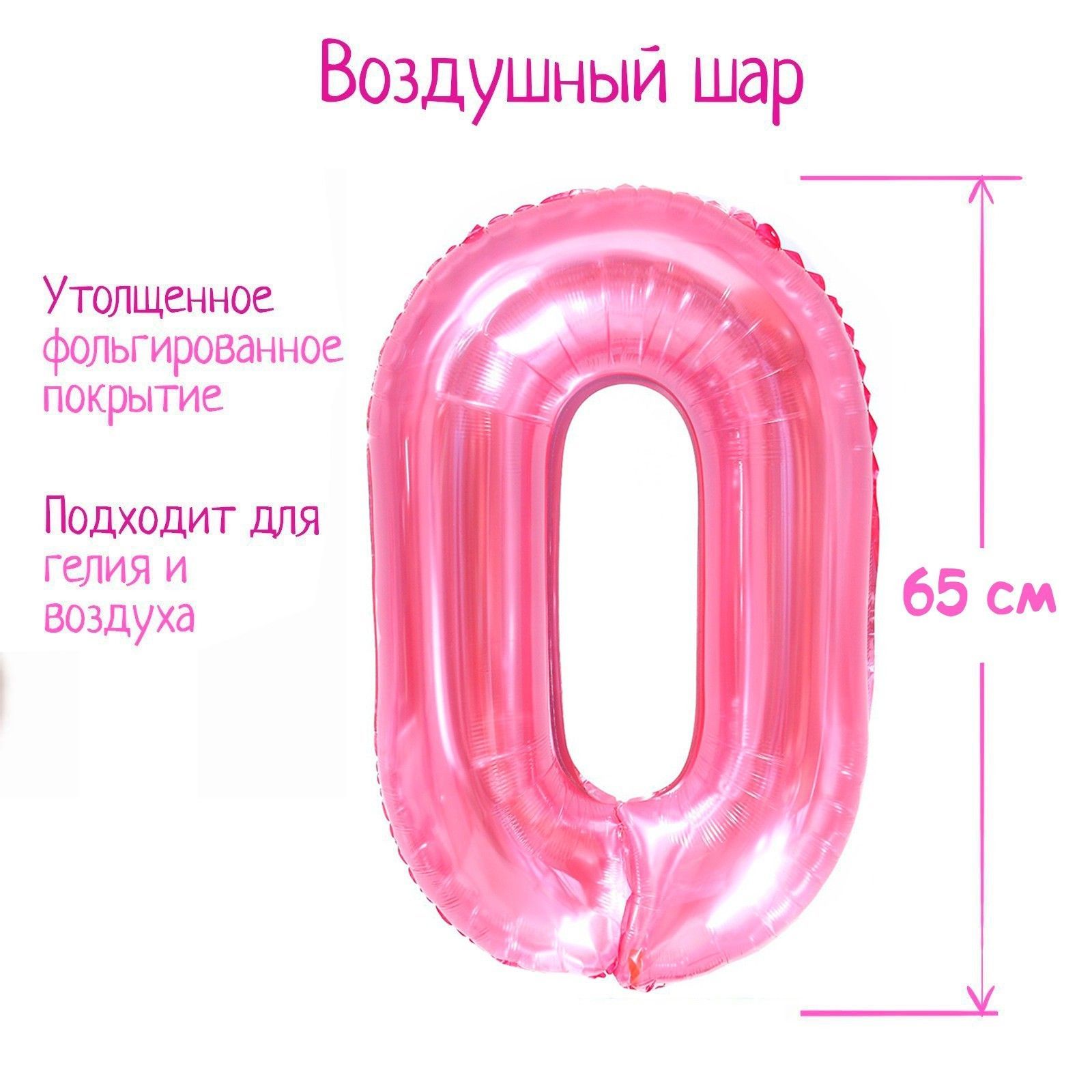 Шар фольгированный Цифра 0 65см прозрачно-розовый 1/25/600 оптом и в розницу в Набережных Челнах, цены в каталоге с доставкой