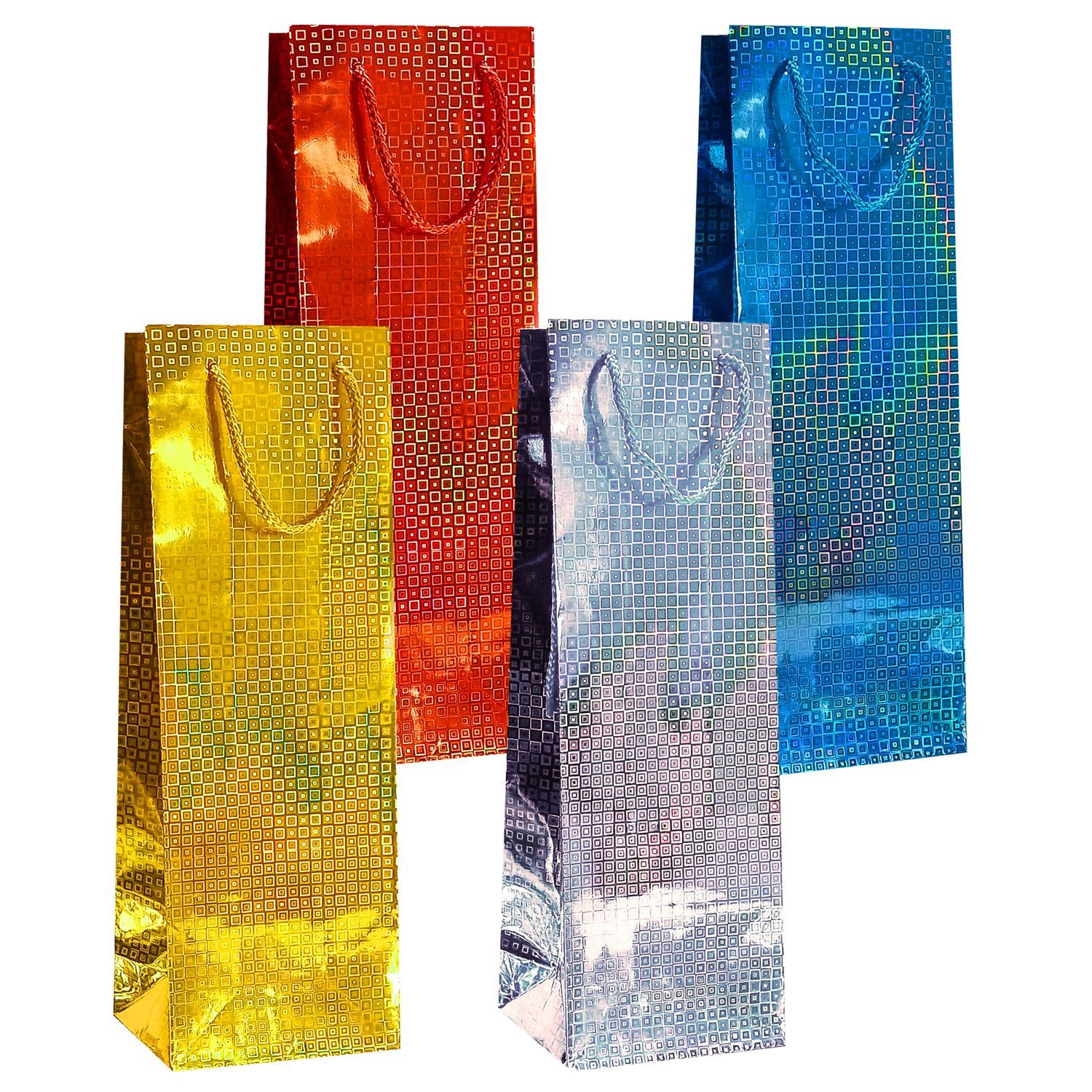 Пакет подарочный бумажный под бутылку (12,3x36,2x7,8) голография 1/360 оптом и в розницу в Набережных Челнах, цены в каталоге с доставкой