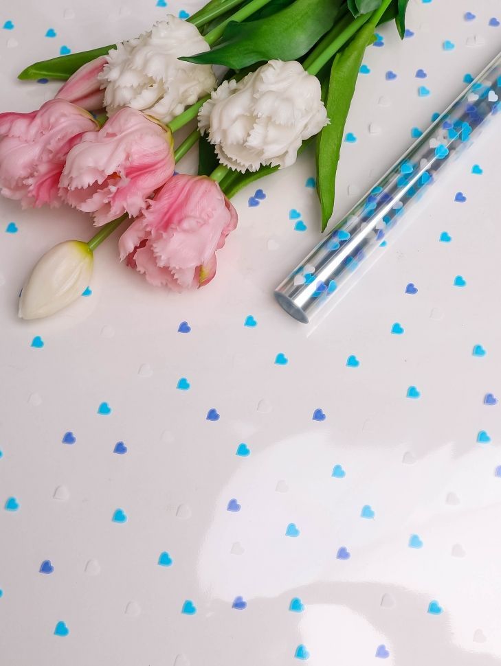 Ролик 70см х8м пленка полипропилен с рисунком Конфетти лаванда 1/10