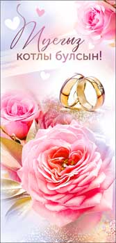 Конверт для денег 16,5х8см С днём свадьбы!!! на тат языке 10/10 оптом и в розницу в Набережных Челнах, цены в каталоге с доставкой