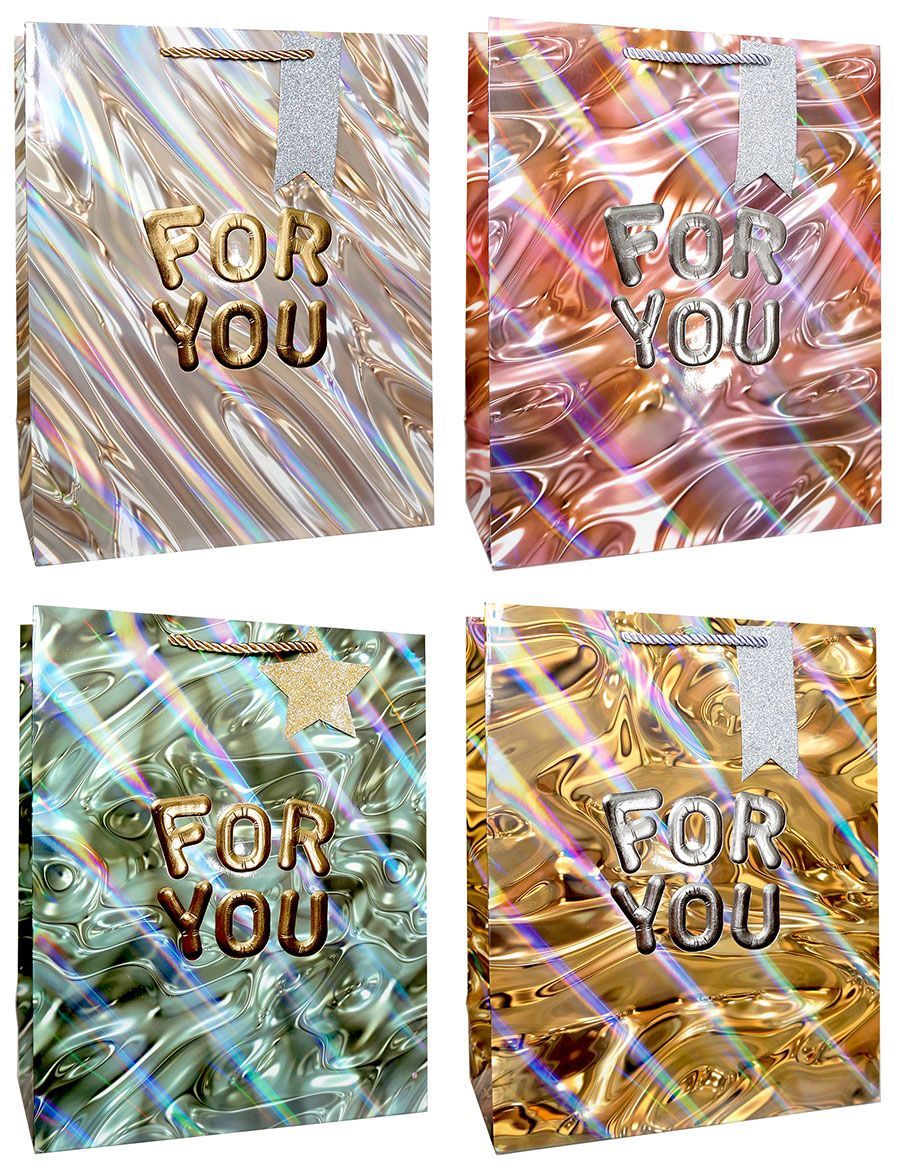 Пакет подарочный бумажный (18х23х10) Люкс с голограф эффектом FOR YOU 1/12 оптом и в розницу в Набережных Челнах, цены в каталоге с доставкой