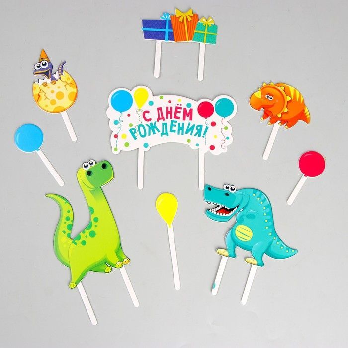 Топпер для торта С днем рождения. Динозавры 1/10 оптом и в розницу в Набережных Челнах, цены в каталоге с доставкой