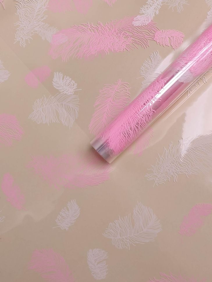 Ролик 60см х 8,5м пленка полипропилен Перышки белый/розовый 1/10 оптом и в розницу в Набережных Челнах, цены в каталоге с доставкой