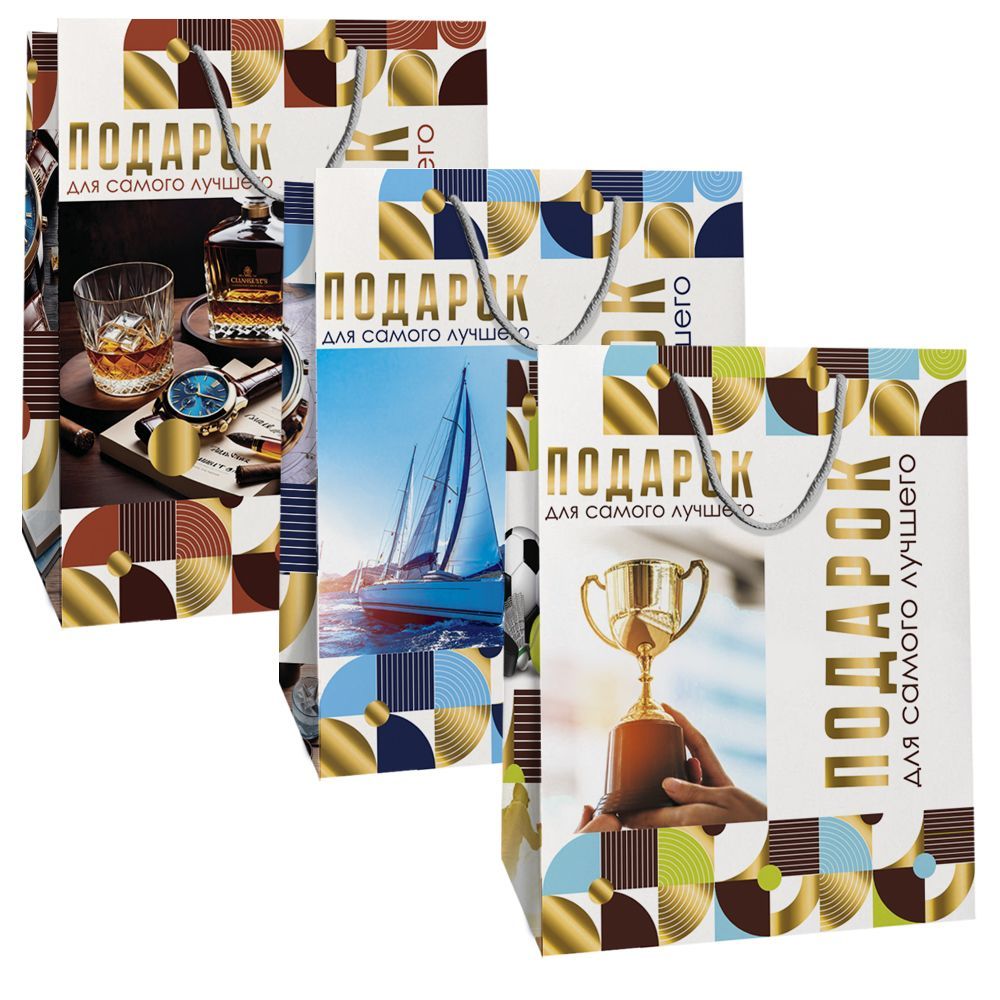 Пакет подарочный бумажный (26,4х32,7x13,6) ламинир мужской микс3 1/12/240 оптом и в розницу в Набережных Челнах, цены в каталоге с доставкой