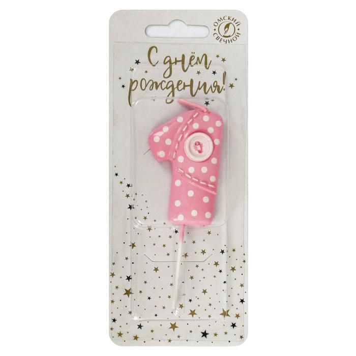 Свеча для торта с пуговкой 1 розовая 1/30 оптом и в розницу в Набережных Челнах, цены в каталоге с доставкой