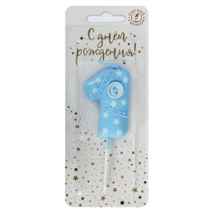 Свеча для торта с пуговкой 1 голубая 1/30 оптом и в розницу в Набережных Челнах, цены в каталоге с доставкой