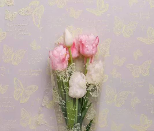 Ролик 70см х8м пленка полипропилен с рисунком Бабочки желтый 1/10