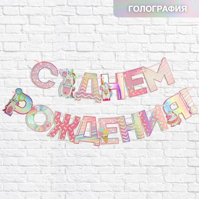 Гирлянды-буквы С Днем рождения голография 160см 1/340 оптом и в розницу в Набережных Челнах, цены в каталоге с доставкой