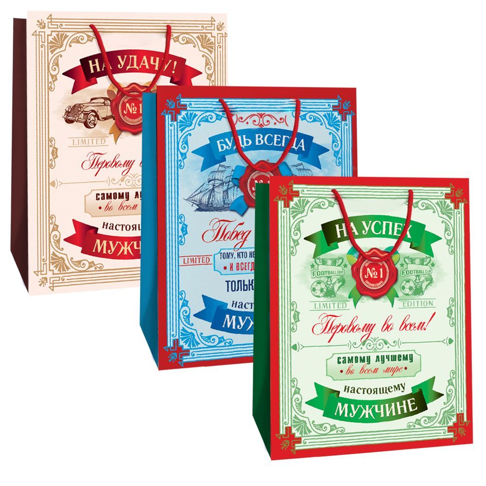 Пакет подарочный бумажный (26х32х13) Микc № 4 муж 1/240 оптом и в розницу в Набережных Челнах, цены в каталоге с доставкой