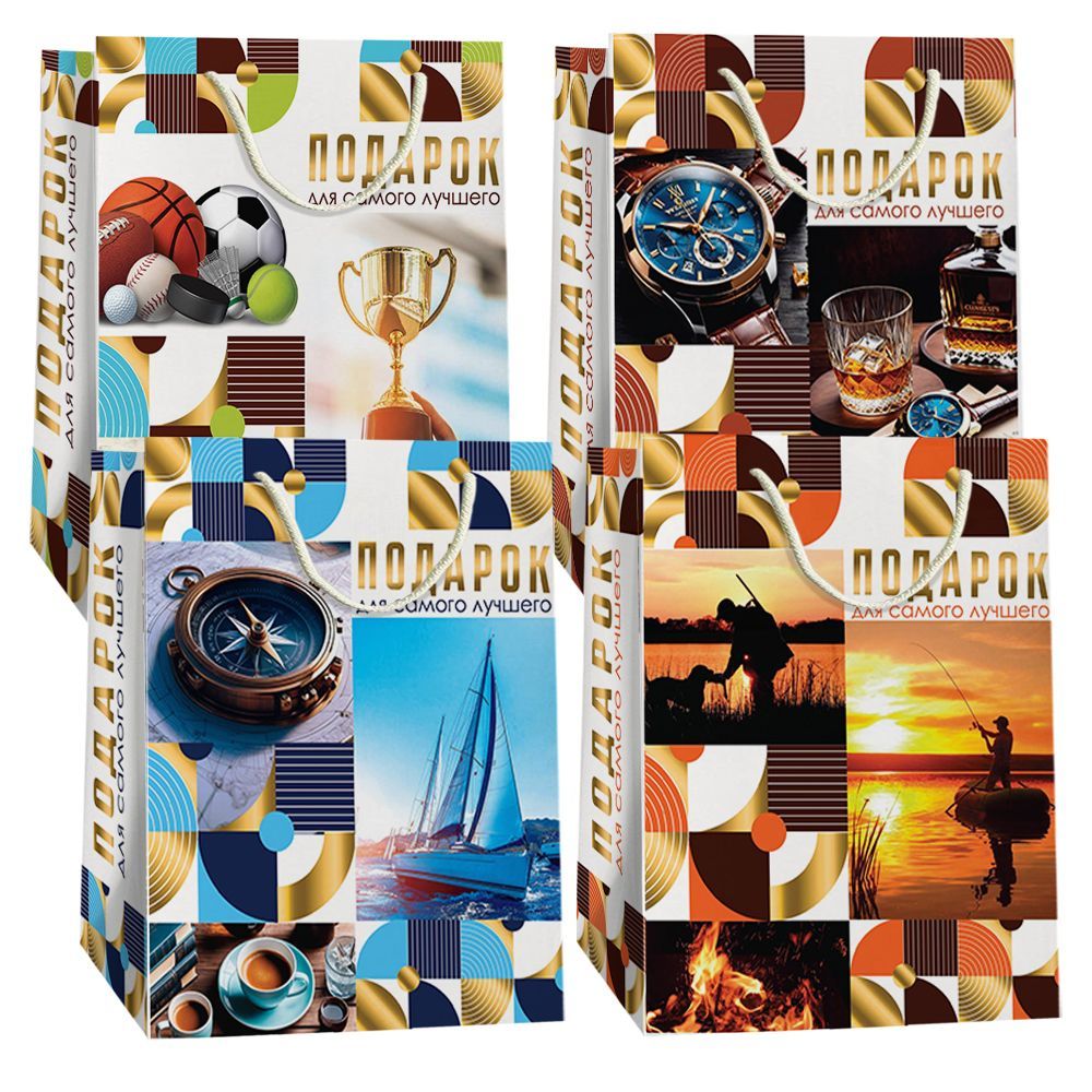 Пакет подарочный бумажный (18х22,7х10) Микс №1 муж 1/360 оптом и в розницу в Набережных Челнах, цены в каталоге с доставкой
