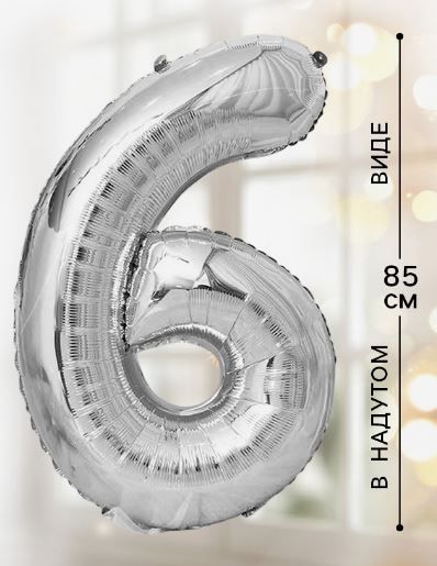 Шар фольгированный Цифра 6 85см цвет серебро 1/20/500 оптом и в розницу в Набережных Челнах, цены в каталоге с доставкой