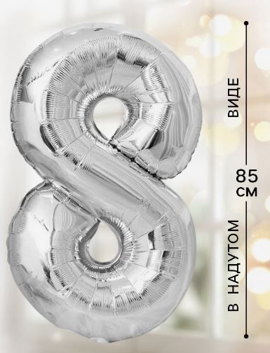 Шар фольгированный Цифра 8 85см цвет серебро 1/20/500