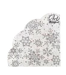 НГ Салфетки 3-сл d 32 см  Rondo Серебряные снежинки на белом (12) 1/15