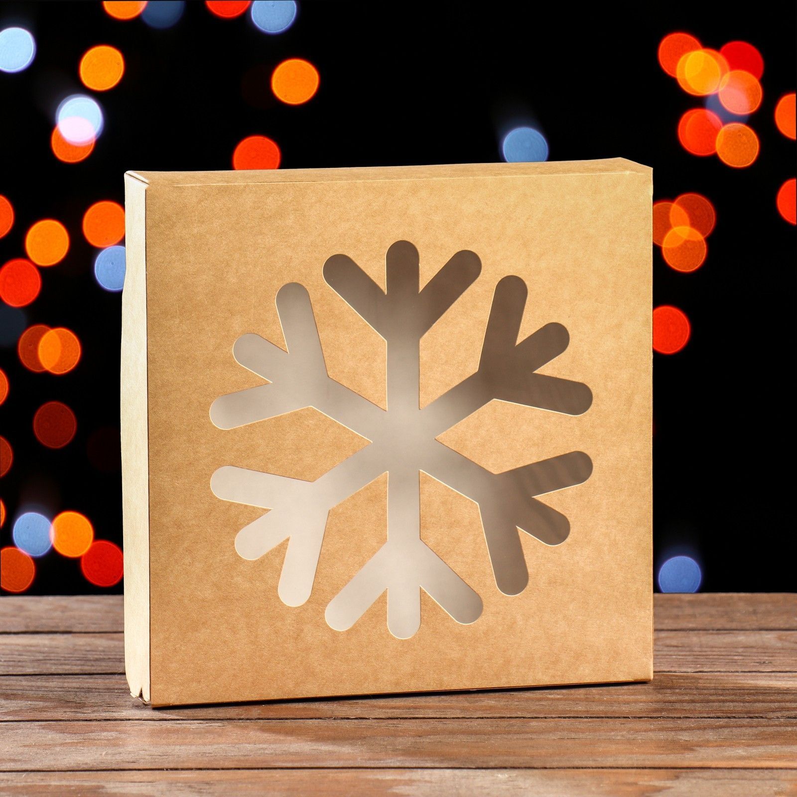 НГ Подарочная коробка 20х20х4 складная Снежинки 1/20 купить оптом и в розницу в Набережных Челнах с доставкой недорого