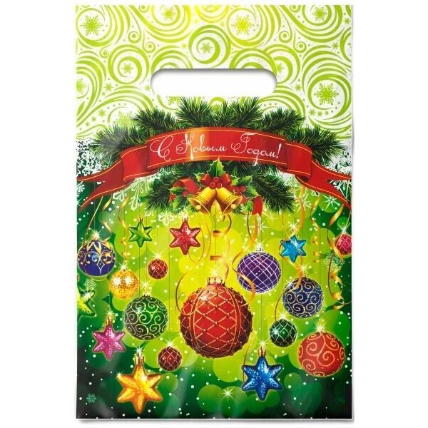 НГ Пакет с вырубной ручкой (20х30)-30 Шарики-фонарики 100/2000 купить оптом и в розницу в Набережных Челнах с доставкой недорого